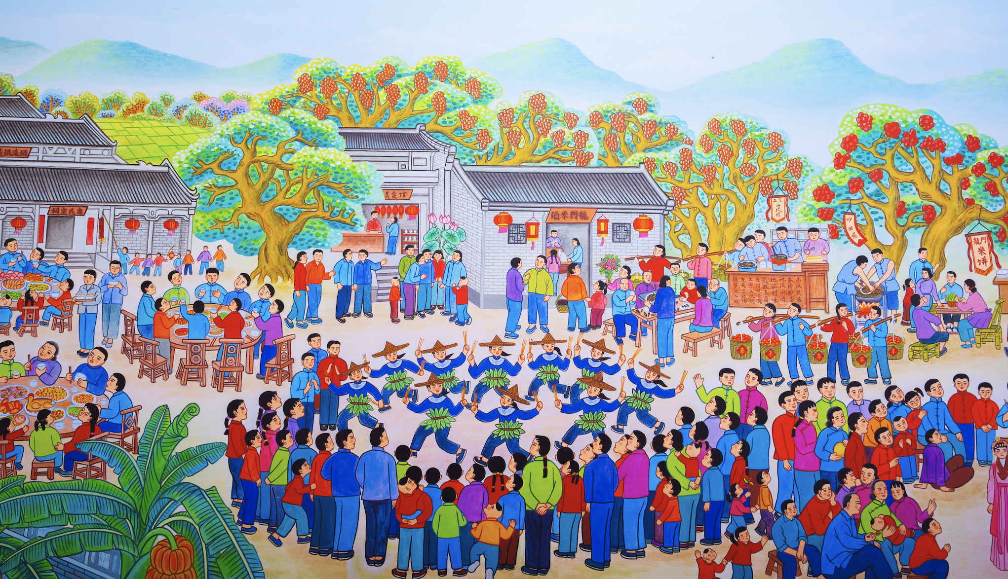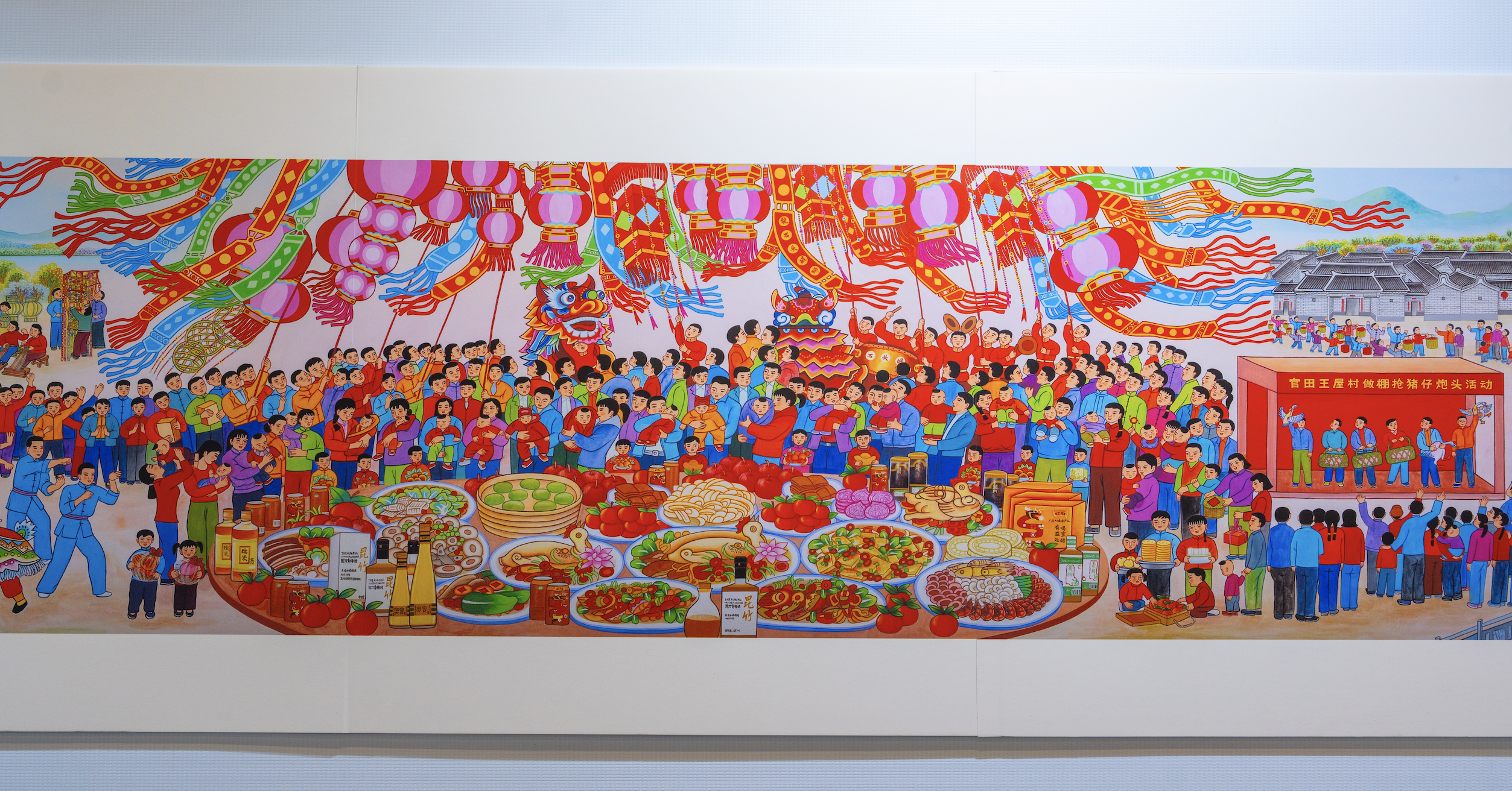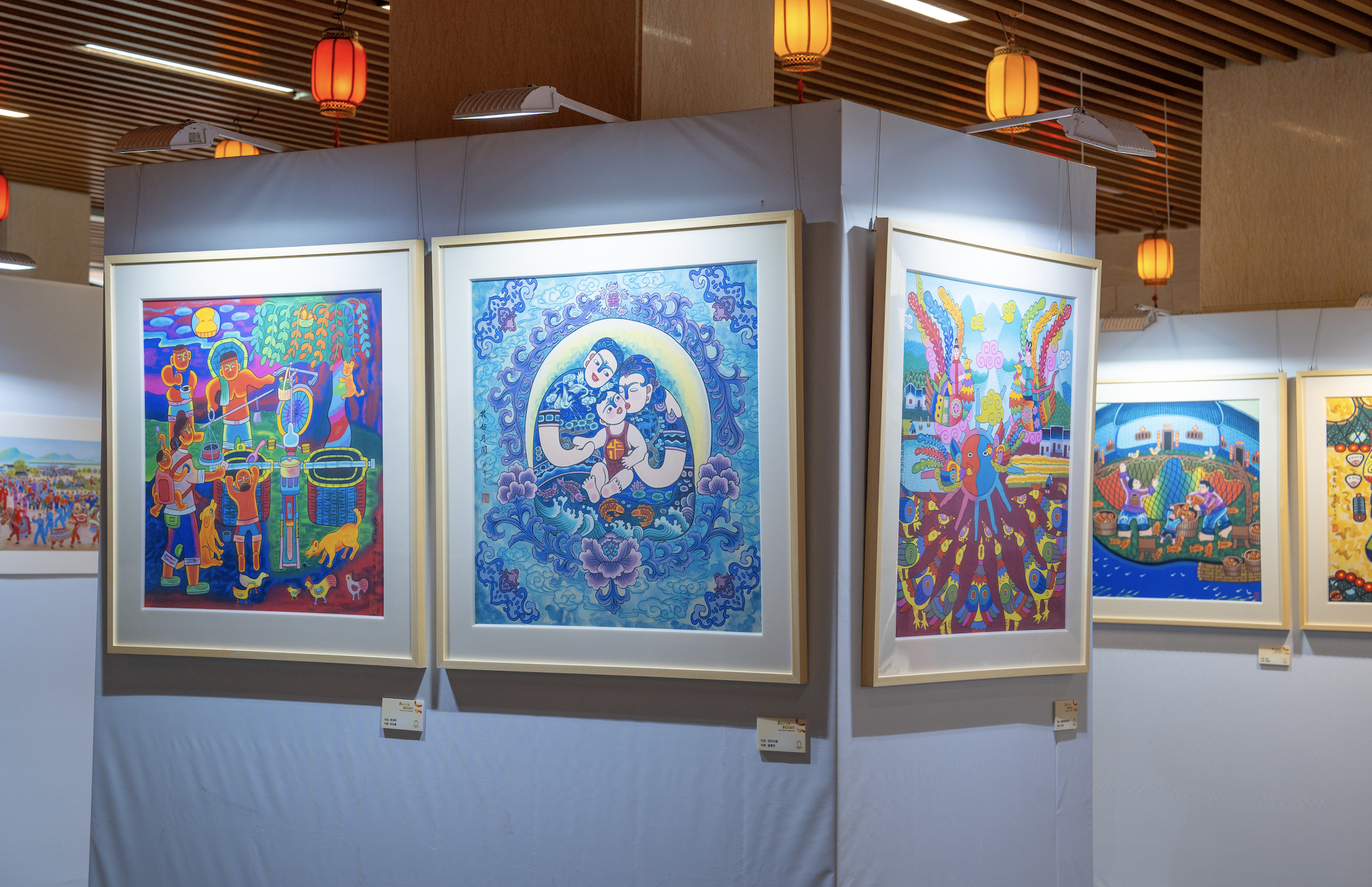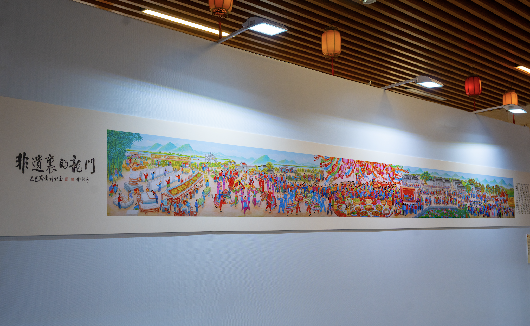 有着农民画版的“直爽上河图”好意思誉的《非遗里的龙门》,以弘大叙事蚁集良好笔触,成为全场焦点。画卷中东谈主物生气勃勃,山水崭新明丽,无邪融汇了舞火狗、上灯等特质风尚,醒狮、春牛舞等传统跳舞,以及虎头花灯、织带仔等深湛身手,更点缀了龙门米饼、髯毛鸡等非遗好意思食,全见识展现了龙门非遗的深厚底蕴与特有魔力。