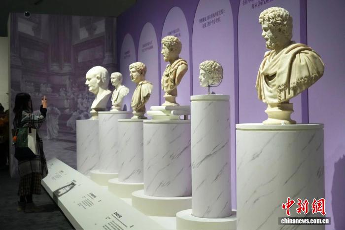 罗马帝国首位天子——奥古斯齐(原名“盖乌斯·屋大维”),第一位留胡子的罗马天子——哈德良,著有《千里想录》的罗马“五贤帝”之一——马可·奥勒留……26件罗马天子贵族半身像的相关亮相,则勾画出古罗马从城邦崛起为帝国的历史历程。